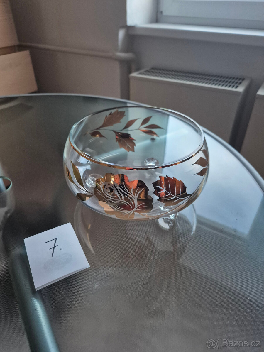 Prodám skleněnou misku,zlaté zdobení. Info: lucie.smejkalova@centrum.cz. Cenu nabídněte.