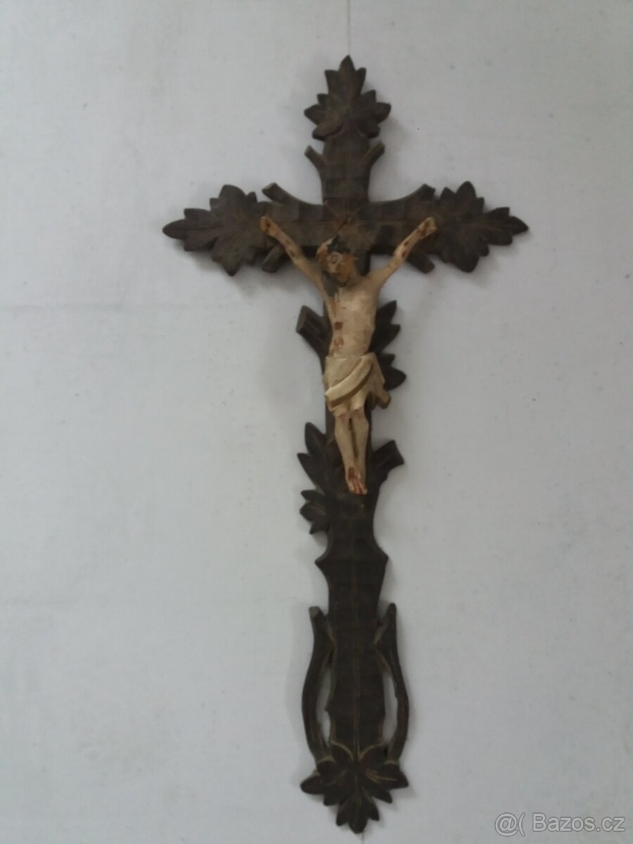 Starý kříž - [18.1. 2026]Starý kříž-starý dřevěný kříž-starožitny kříž- dřevěny Ježíš stáří okolo 150 az 200 let originální poctivá ruční práce! Rozměr kříže 63cm x 42cm Stav viz. foto