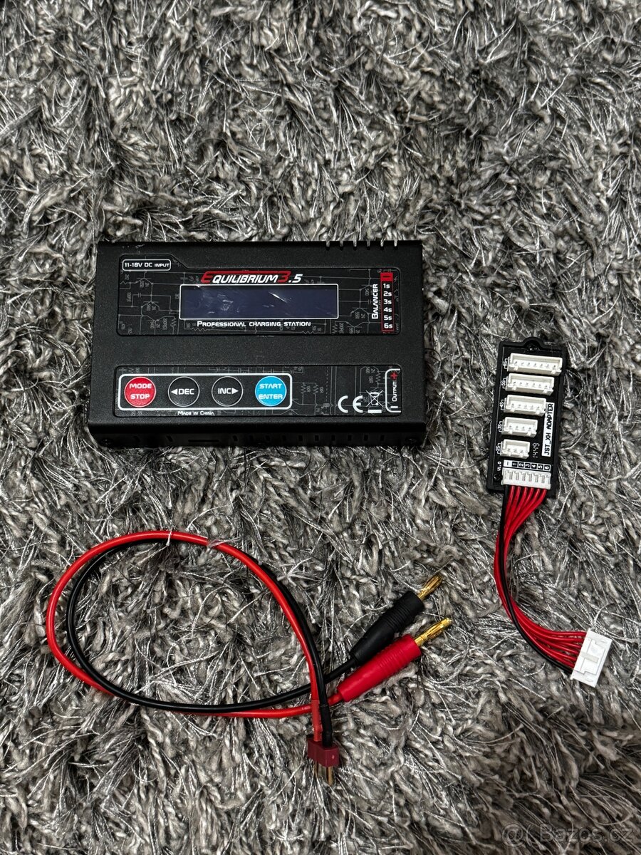 Rychlonabíječ s balancerem 1-16čl. NiCd/NiMH, 1-6čl. Li-po/Li-ion/Li-Fe, 2-24V Pb proudem 0,1-6A. Vybíjení max. 2A. Vstup tepl. čidlo, vypínání dle teploty, kapacity, času. Napájení 12 V+ síťový zdroj. Režim zdroje napětí s proud. pojistkou nabíjení