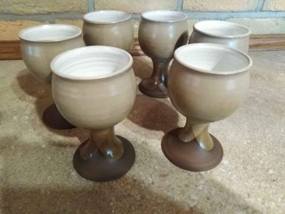Keramické poháry na víno KERAMO Kožlany - [27.1. 2026]retro set, originální původní poháry ze 70. let, glazované, nikdy nepoužívané, pouze vystavené. Díky svému tvaru a „konstrukci“ udržují dlouho teplotu „nápoje“. Perfektní stav, bez jakéhokoliv poškození. Výška 9 cm. šířka dole 6,5 cm, šířka nahoře 6, ...