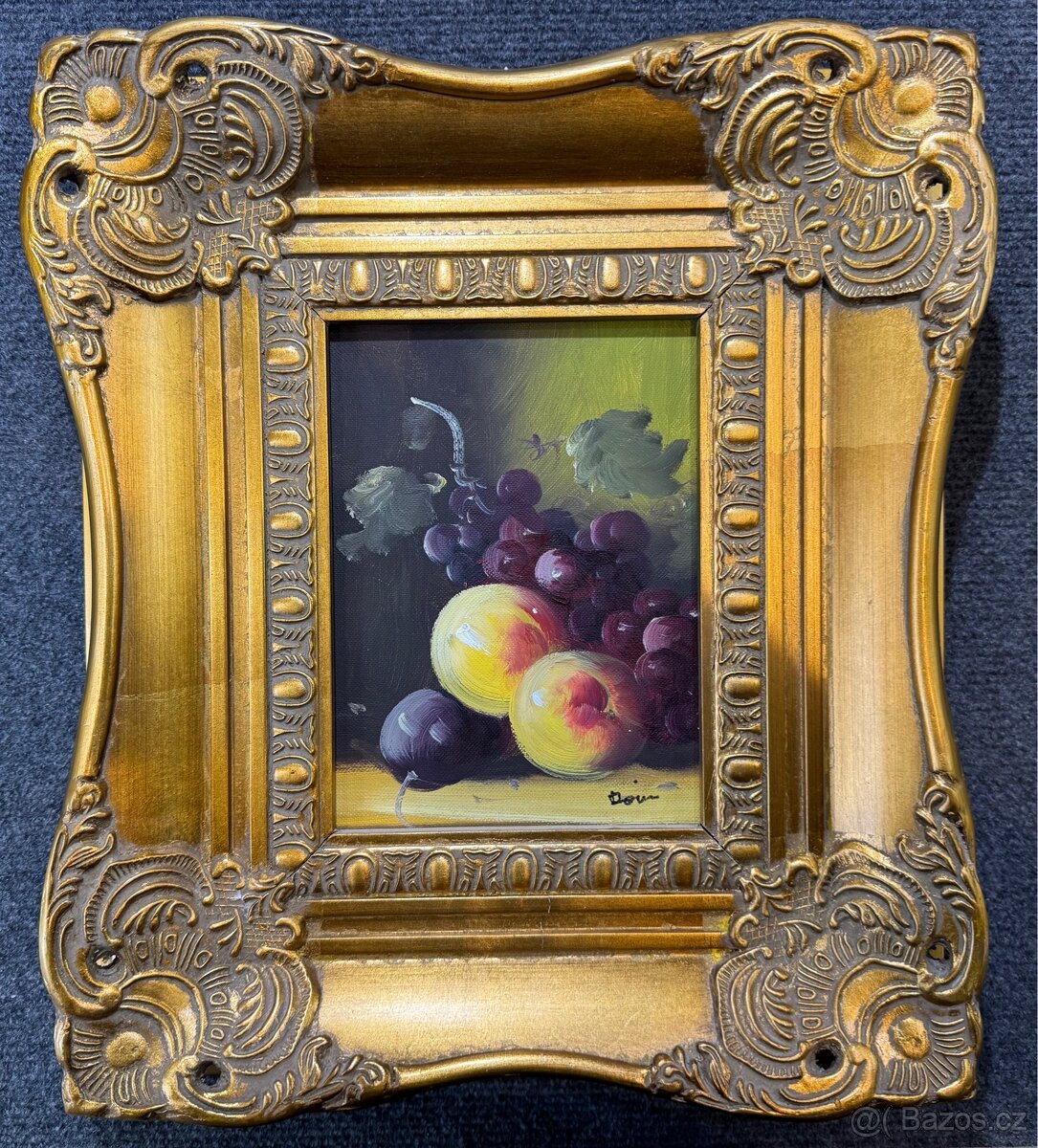 obraz Zátiší s ovocem olej na plátně 15x20 cm,rozměr rámu 32x37 cm,signováno