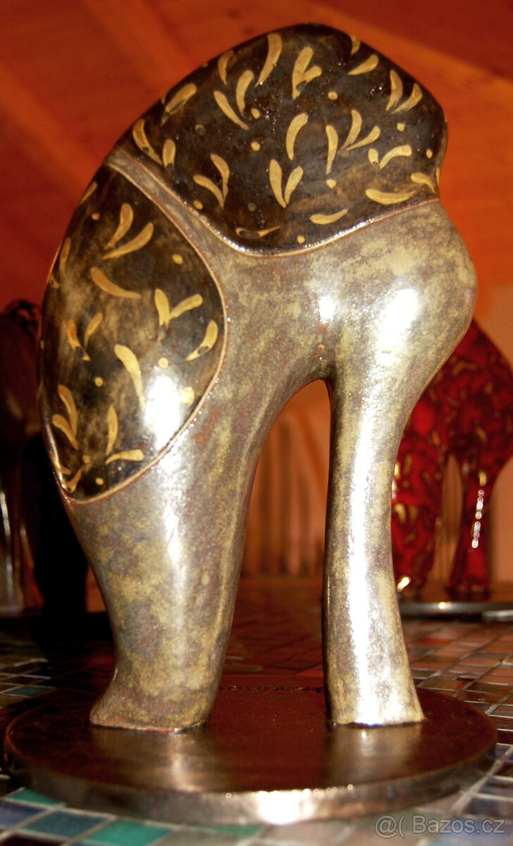 Prodám originální plastiku "Lodičky" - keramika, glazováno a zlaceno. Jedná se o set 5 kusů prodejných i jednotlivě. Rozměry - černá č. 1 - v. 23 cm, černá s páskem v 26,5 cm, červená v. 24 cm, tyrkysová v. 24,5 cm, oranžová v. 23 cm. Cena 2000,- CZK každý kus. Osobní odběr, nebo dobírkou.