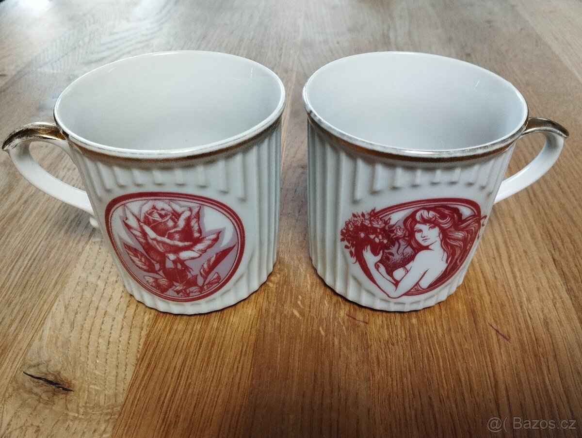 Retro hrnky, značené CZECHOSLOVAKIA.
