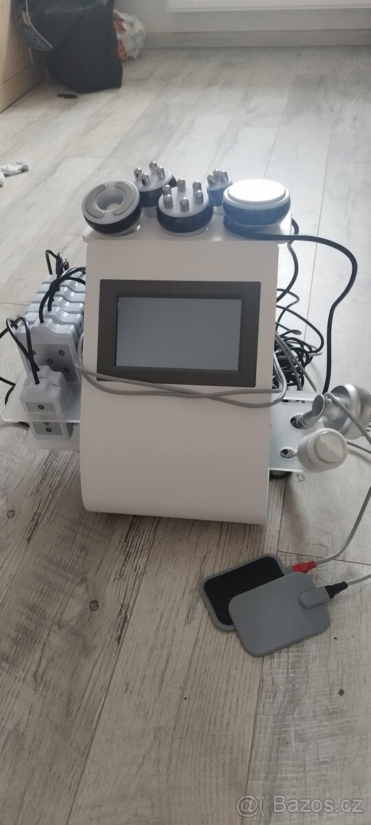 Funkce kavitace, laserová lipolyza, EMS, vakuum rukojeť, šestipolová rukojeť na tělo, radiofrekvence na obličej, rukojeť na oční okolí, ošetření chladem a biomikroproudová a led fotonová terapie - na tělo i obličej má 7 led osvětlení na různé ošetření. Vše plně funkční použito jen párkrát. Důvod prodeje rušení salonu