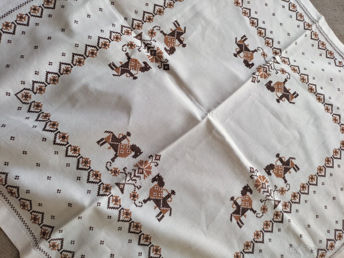 Ručně vyšívaný ubrus, rozměr 80 x 80 cm, vzor koníků