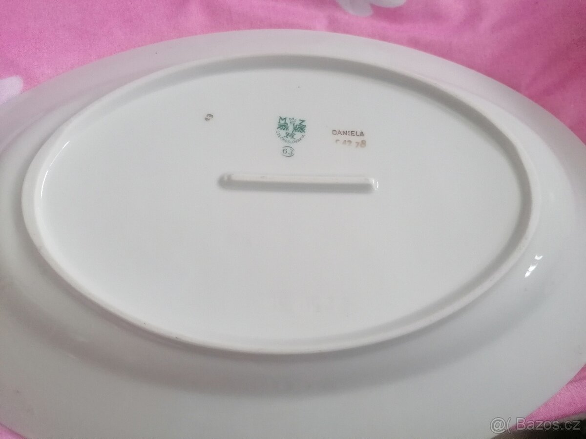 6x hluboký +mělký talíř, servírovací tác oválný + kulatý, mísa 2x, polevkovnik s pokličkou, 1x dezertní talířek. Osobní převzetí. Pište sms. Ozvu se.