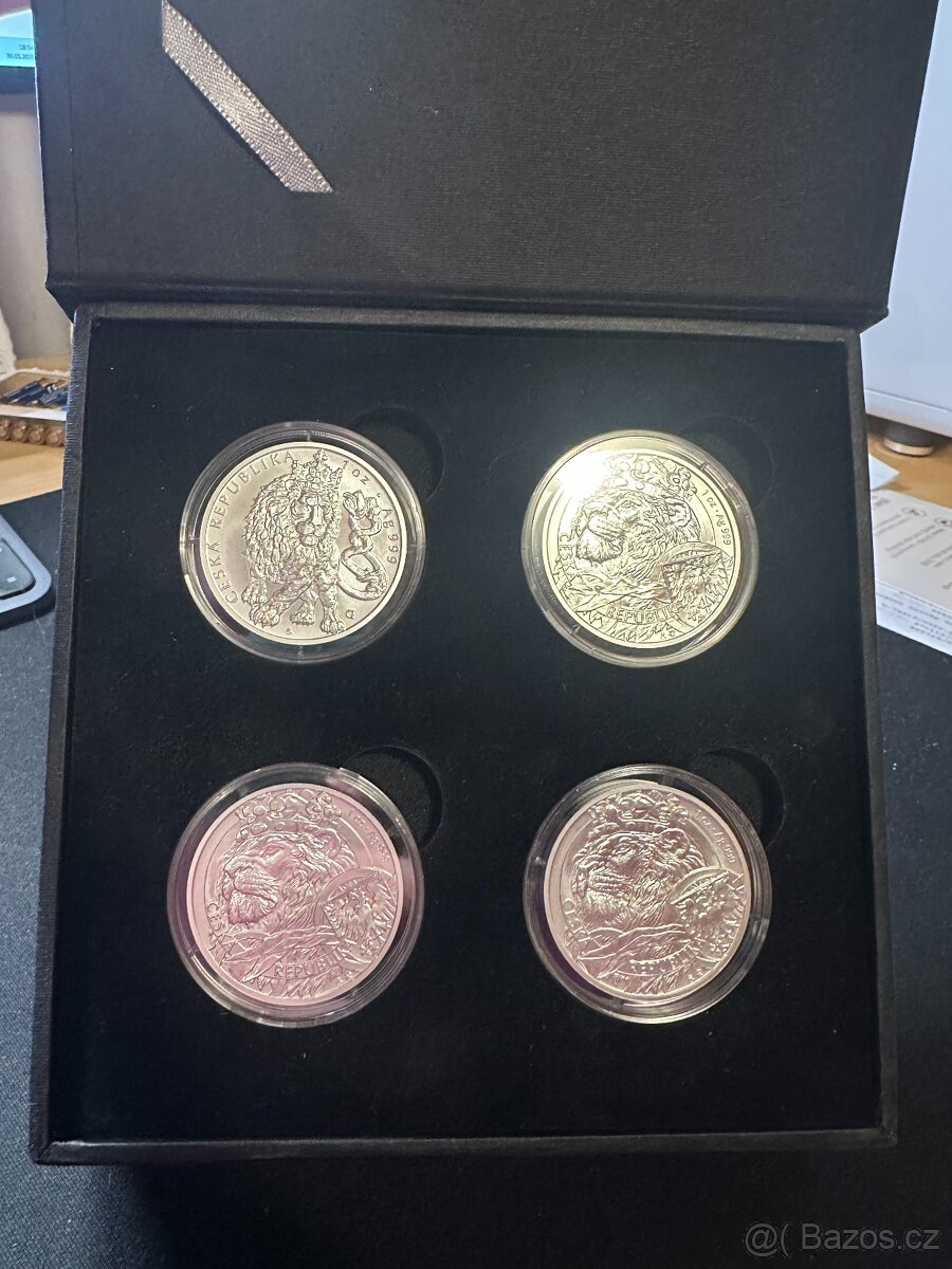 Prodám čtyři investiční mince Český lev 3x2025/1x2026 1 OZ. Jako nové, kupováno měsíc zpět přímo u České mincovny. Nikdy nevytaženo z kapsle.