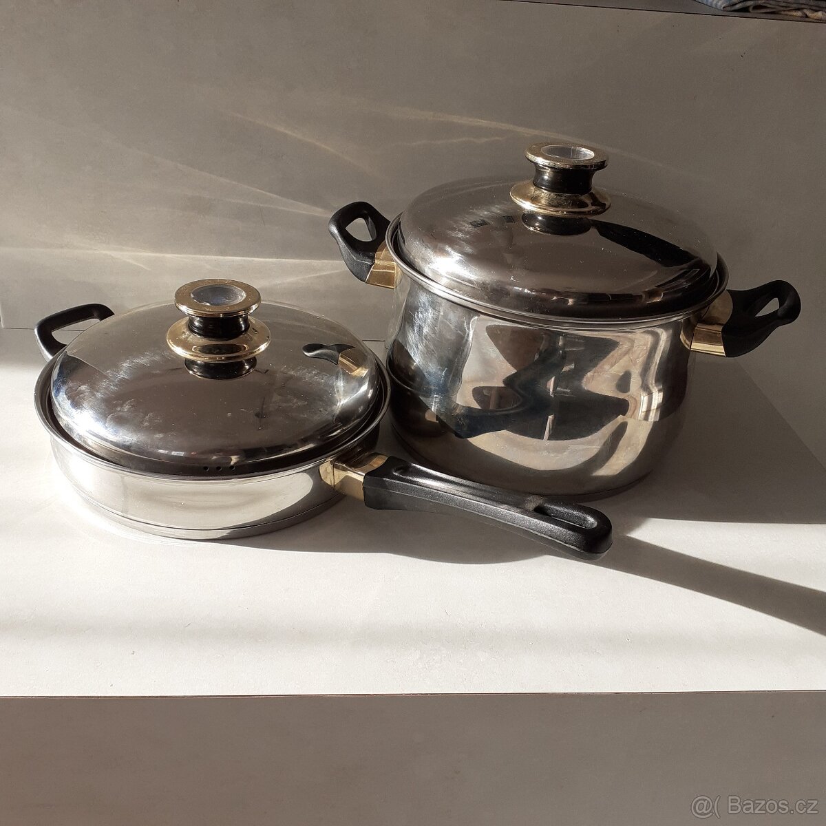 Prodám kvalitní sadu nádobí zn. FORSTENBOSCH. Tato sada je vyrobena z kvalitní ušlechtilé leštěné oceli (nerezová ocel 18/10), zesílené dno. Je vhodná jak pro plynový, elektrický nebo indukční ohřev. Hrnec s poklicí : průměr 26 cm a výška 16 cm( využitelný obsah 6,5 l ), pánev s poklicí : průměr 26 cm a výška 6 cm.