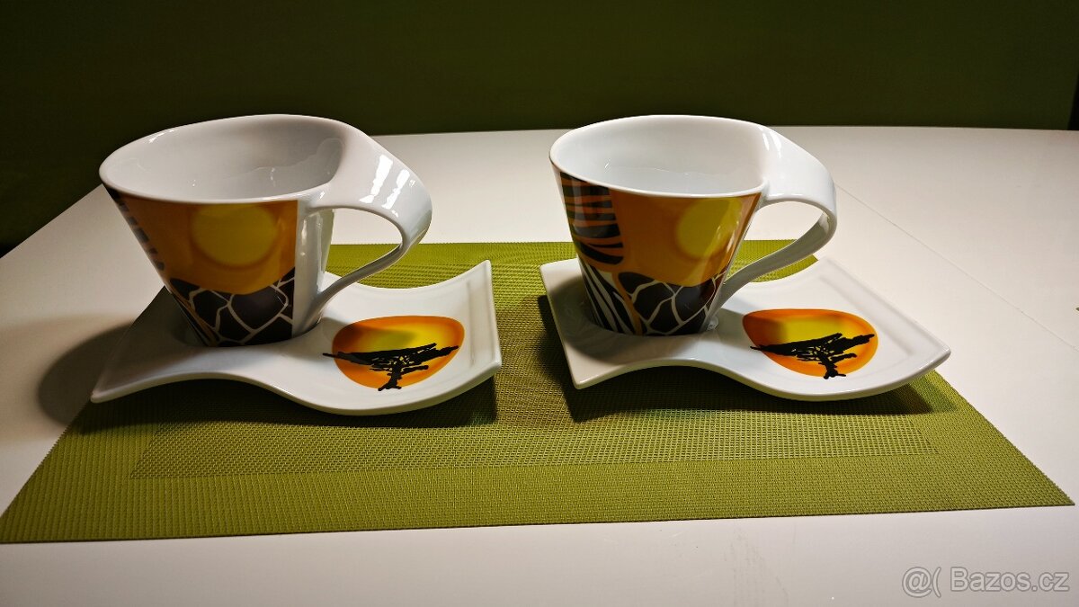 Prodám 2 kusy porcelánových hrnků TWIST 400 ml, AFRICA, s podšálky. Hrnky jsou nové. Cena za oba 300,- Kč.