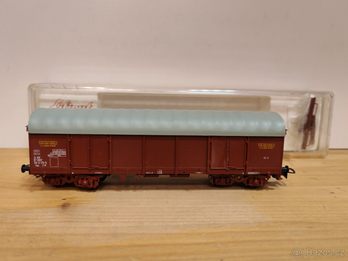 Čtyřosý vůz Tas (Liliput) pro modelovou železnici H0. Málo jetý, doplňky přiloženy v krabičce, pěkný stav.