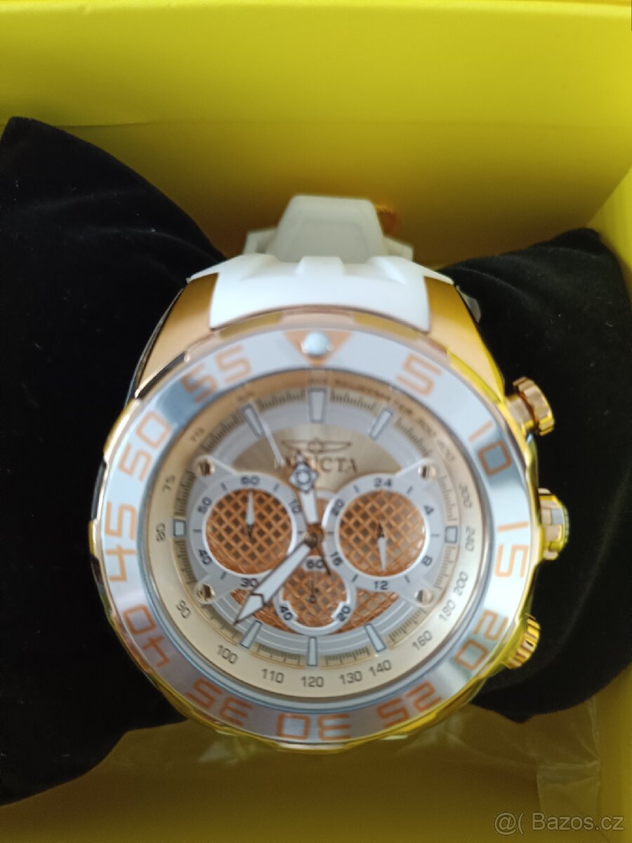 Invicta Speedway Scuba gold and white 50mm, nerezová ocel, Quartz, vodotěsné