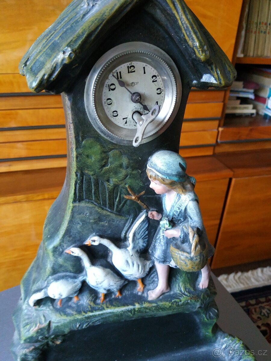 Prodám figurální stolní hodiny. Výška 42cm, šířka 29cm. Krásné provedení, keramika. Cena 3700 Kč.