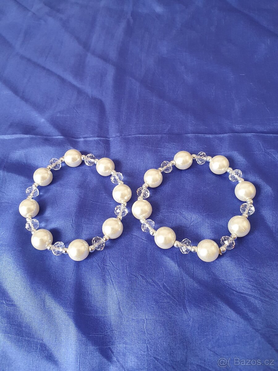 Nabízím 2 náramky, bižuterie, na gumičce, imitace perliček a broušené korálky. Lze nosit jednotlivé i společně. 100,- Kč za oba.