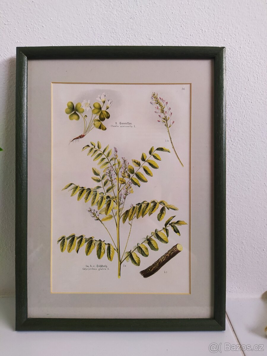 zarámovaný obrázek z botanického atlasu cca z r. 1890, pravděpodobně Mattioli, je v dobrém stavu, občas skvrny na obrázku , je to stáří papíru , velikost menší než A4, velikost 30,5 x 22 cm