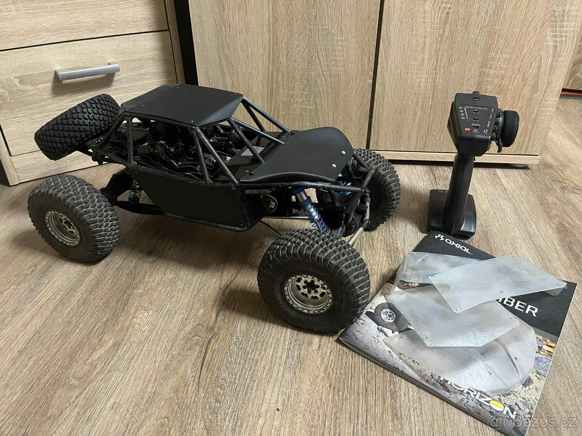 Prodám Crawler Axial Axial RR10 Bomber 2.0 4WD 1:10 RTR. Bomber je osazený setovou vysílačkou a regulátorem. Nový motor Dynamite 35T, servo nové nejeté - digi, kovové převody SRT DL3017. Celkem zachovalý, odjel asi 10 trial závodů a dvě expedice. Nyní leží na polici nevyužitý. Jedná se o verzi RTR takže stačí připojit baterii a je připraven k jízdě. Zakoupen 2/23. Na podvozku nějaký upgrade - komplet kovové linky náprav a řízení, černá kapotáž z 3D tisku. Zvládne vykřížit překážku 17cm - viz. foto. Cena je pevná.