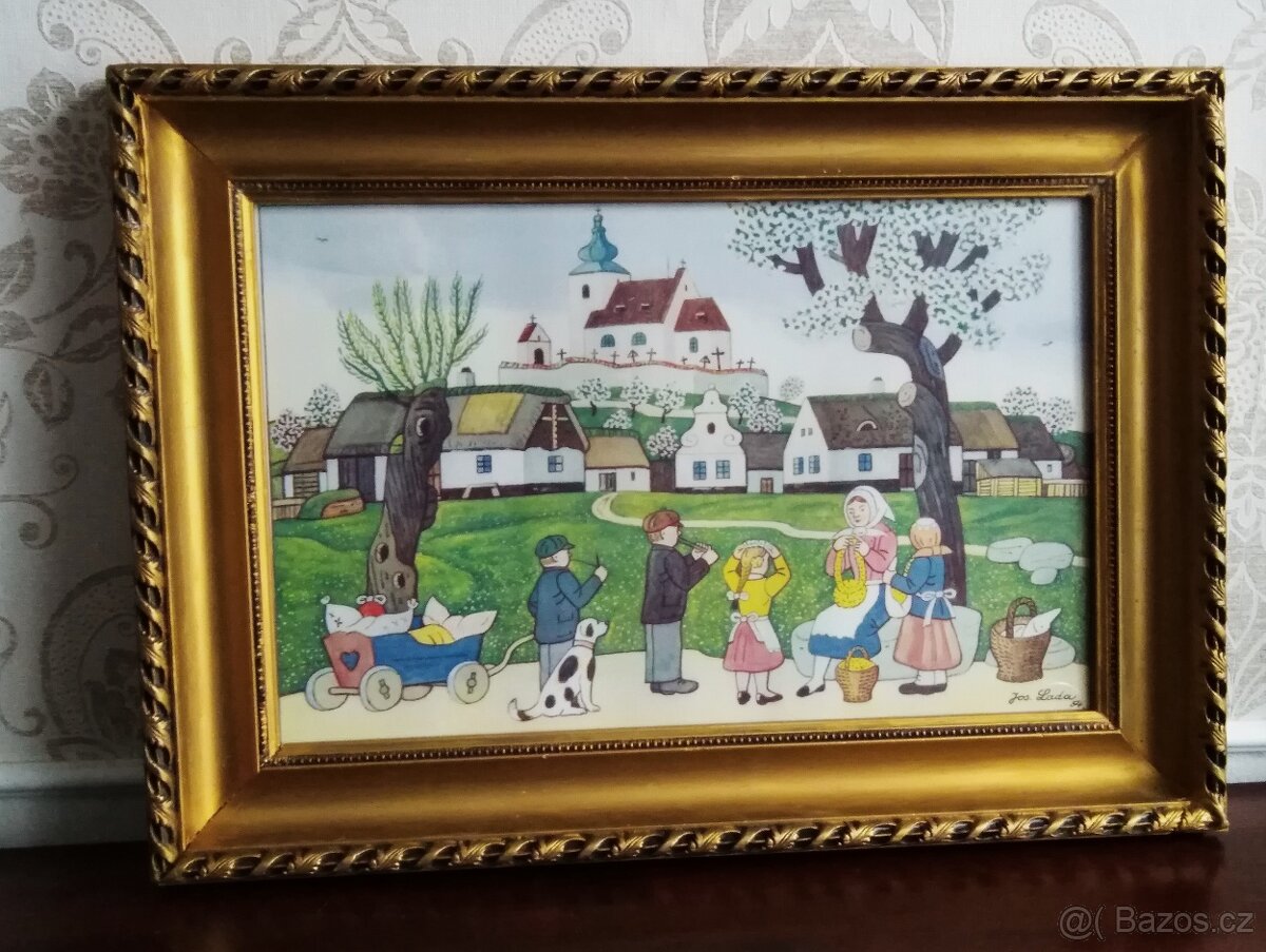 Josef Lada - JARO 1954 reprodukce, rozměry 60x43cm, bez rámu 46,5x29,5cm.