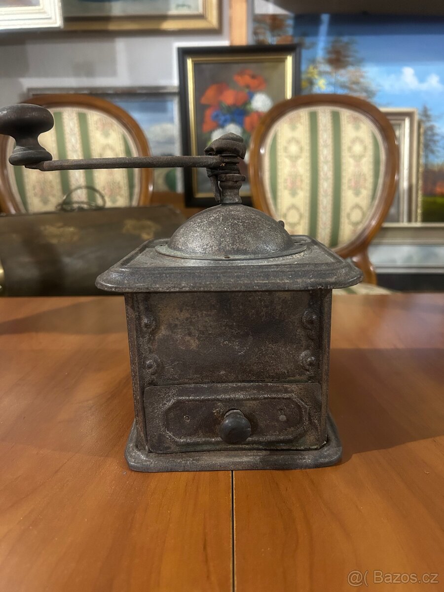Nabízím k prodeji Starožitný plechový kávomlýnek