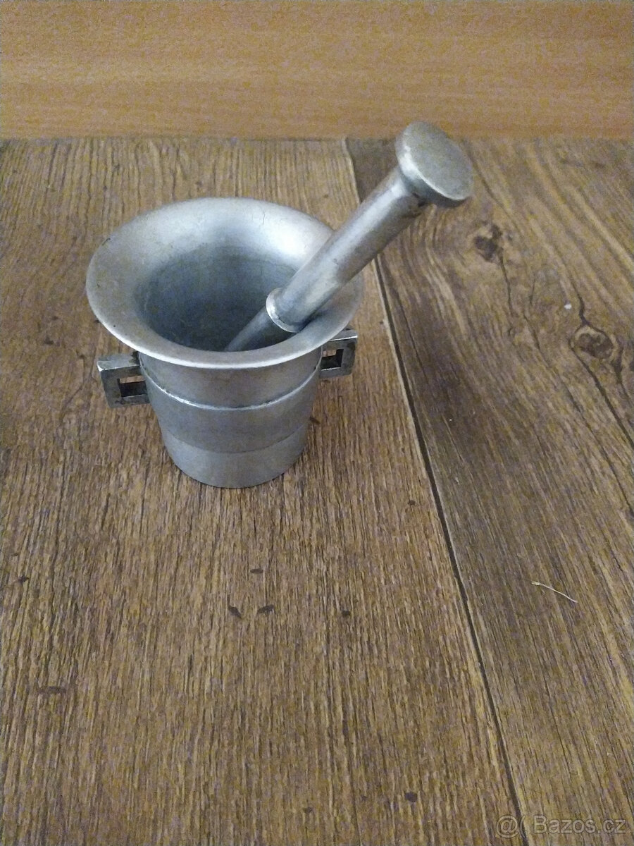 Prodám starý mini hmoždíř s tlučkem. Výška 7,5 x průměr vrchní části 8 cm, tlouček 13.5 cm. Nálezový stav bez poškození. Předání Praha nebo zásilkovna. Cena 500 Kč