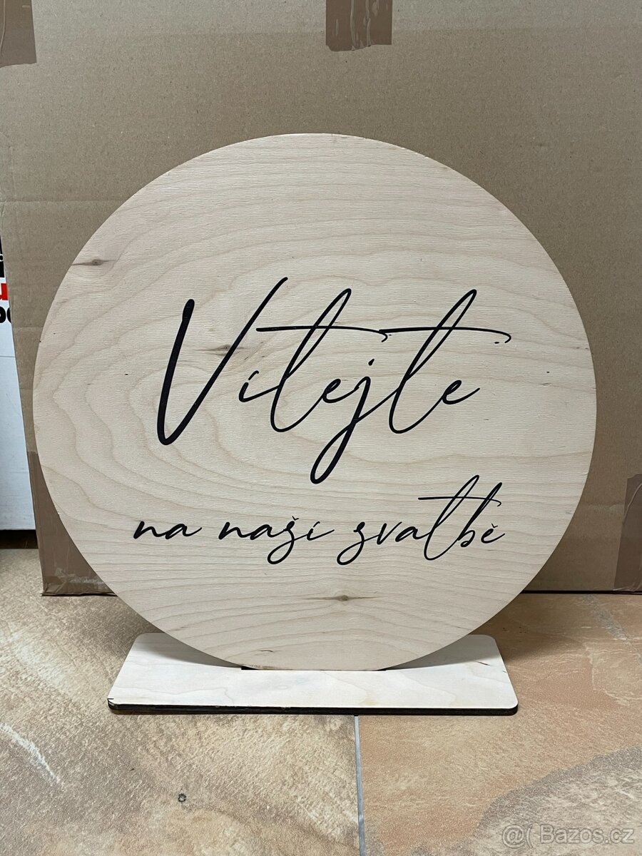Uvítací cedule ,,Vítejte na naší svatbě´´