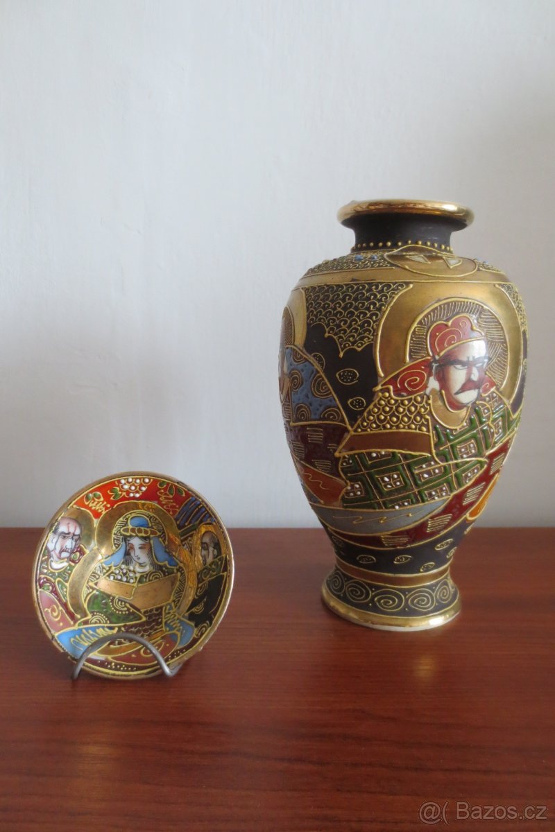 Prodám starožitnou vázičku a misku s jap.motivem, materiál: porcelán, malba smalt, reliéf.dekor samurajů, v 15, 5 cm, , miska 6, 5 cm. Kontakt jen mailem, děkuji. Cena celkem: + poštovné.
