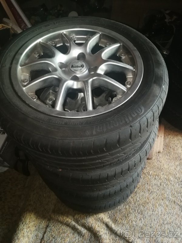4 Alu kola Alessio R423 7Jx15H2, ET38 s letními pneu 195/55 R15 85H. Cena 2900 kč za všechny.