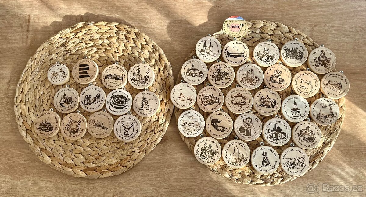 Turistické známky - [1.2. 2026]Nabízím dřevěné turistické známky, viz foto. Některé z nich jsou včetně samolepky.