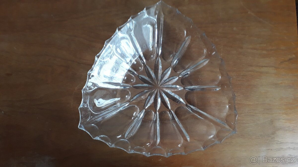 Prodám skleněný tác trojhranný průměr cca 30cm, výška 5 cm