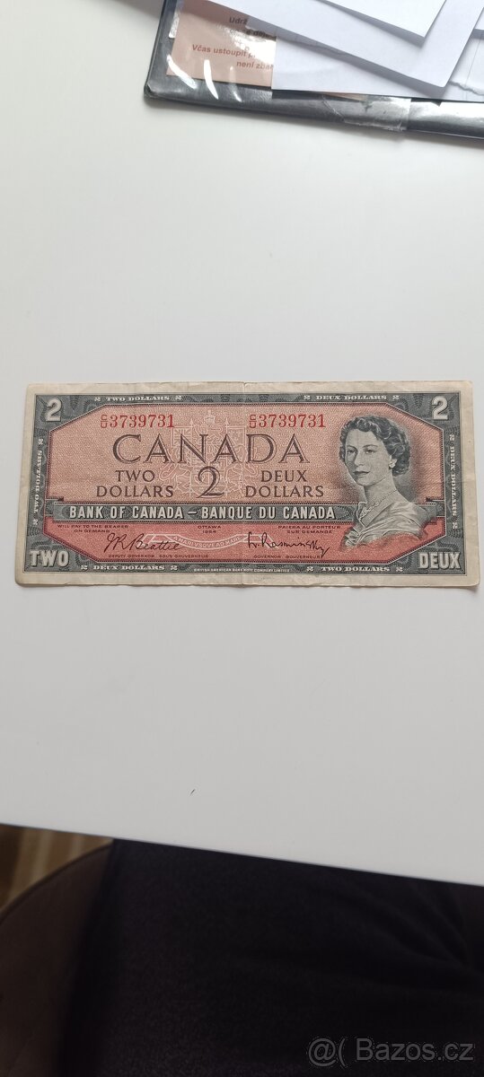 Prodám 2 dolaru bankovku v dobrém stavu . ottawa 1954rok Canada!!!