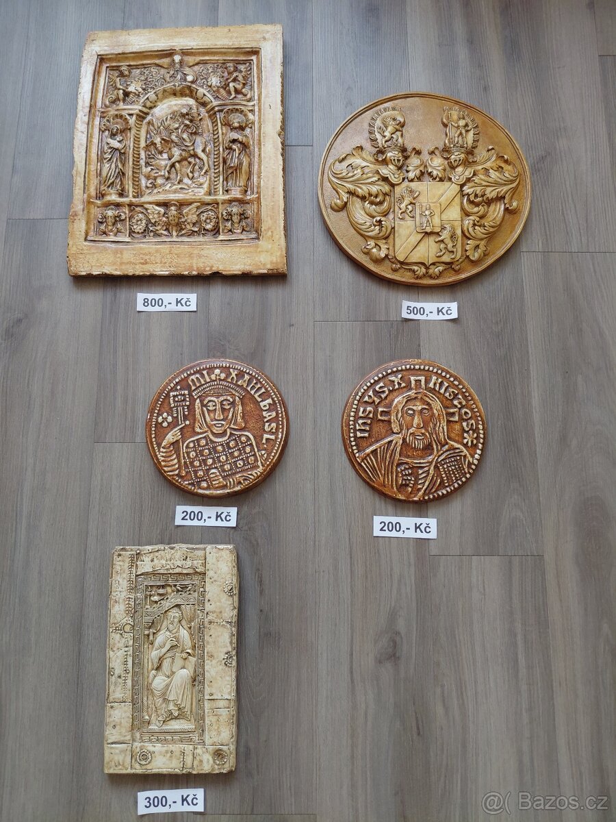 Prodám pro milovníky historie sádrové repliky historických závěsných dekorací na zeď, vše na fotu včetně cen. Při zakoupení všech dekorací zvýhodněná cena 1800,- Kč.