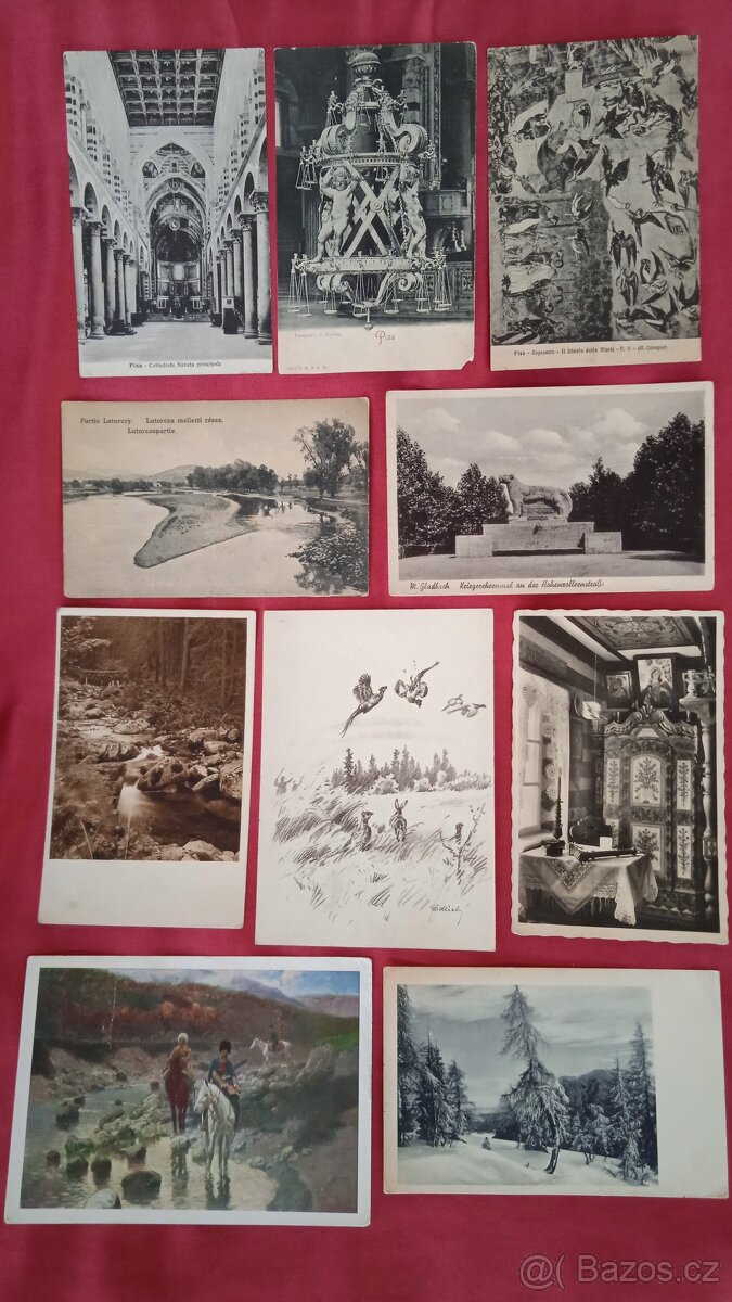 Prodám 21 českých a zahraničních starých pohlednic. Místopisné: č.1,2,3. Pisa, č.4 Latorcza. Prodávám po min. 5ks 20kč/ks, při odběru všech 350kč celkem.
