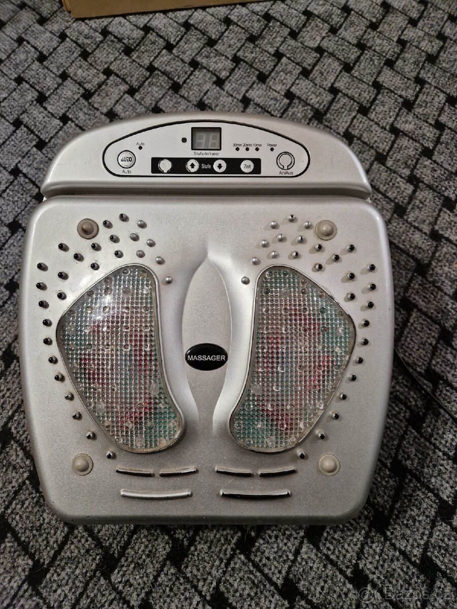 Prodám masážní brnící přístroj na nohy, pomáhá s prokrvením. Několik stupňů intenzity brnění i hřání nohou. PC 4000kč