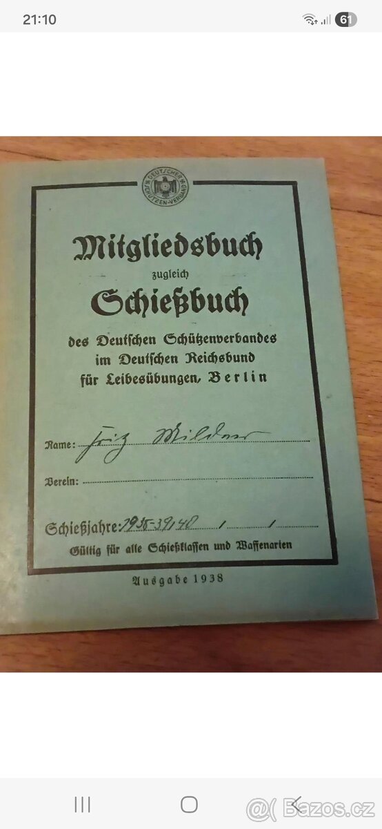 Koupím do sbírky tyto střelecké průkazy 3.říše