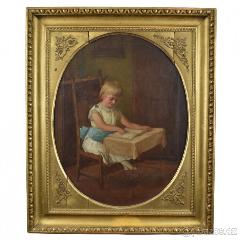 Pozrite všetky moje inzeráty ! 370 EUR , "Čítajúce dievča", olejomaľba na plátne, 19. storočie, rozmer s rámom 77 x 64 cm, Biedermeier ochsenaugen rám , rám poškodený, nálezový stav , znaky veku a opotrebenia. Zasielam aj medzinárodne s poistením a so službou sledovania zásielky, extra bezpečné balenie. Pri zaslaní kuriérom platba vopred na účet . Obhliadky v Prešove po telefonickom dohovore .