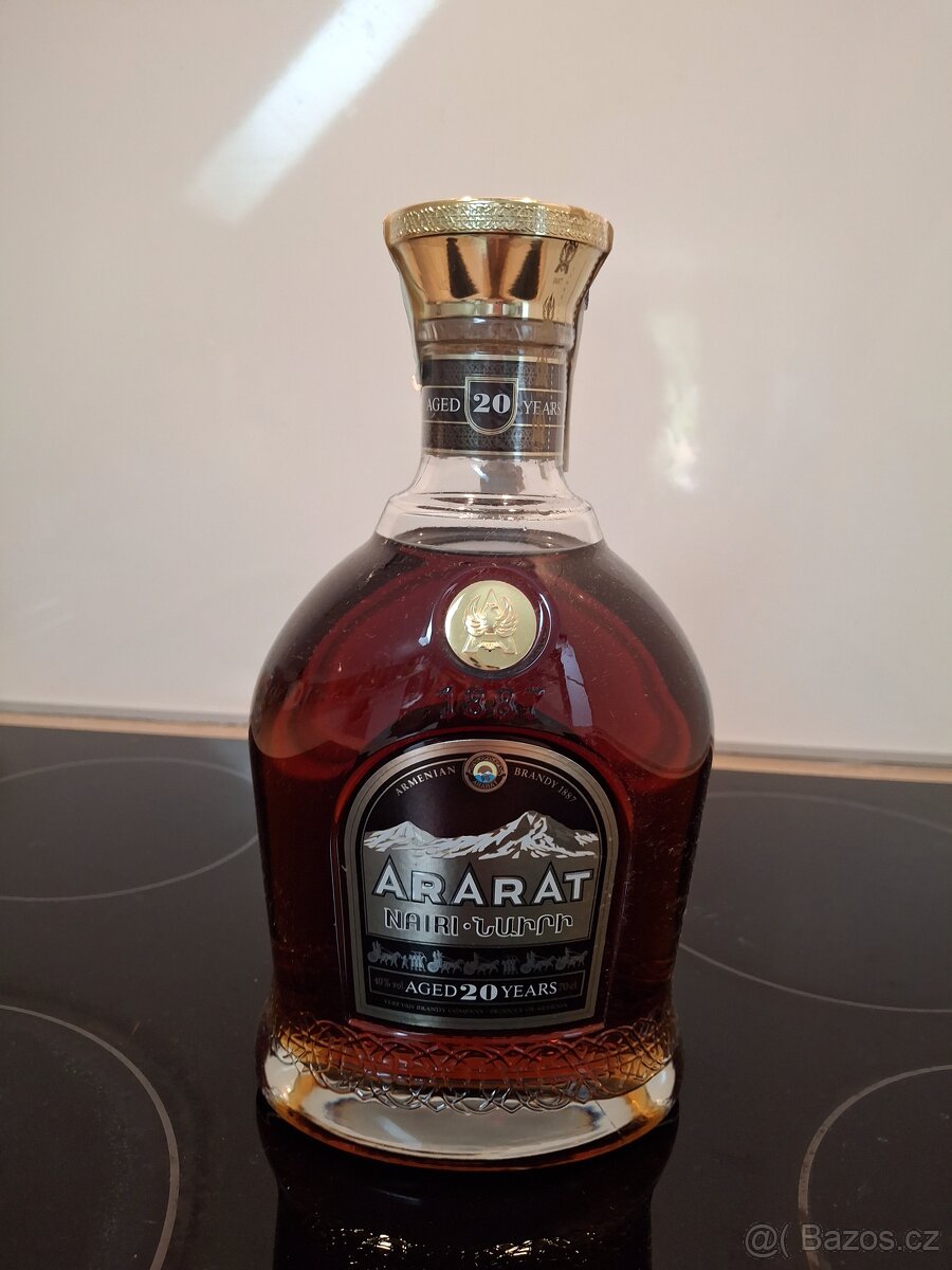 Ararat NAIRI 20yo je výjimečná arménská brandy, která zrála minimálně 20 let v dubových sudech. Tato brandy je vrcholem řady Ararat a vyznačuje se nesmírně komplexní chutí a bohatým aroma. S obsahem alkoholu 40 % a objemem 0,7 litru je určena pro opravdové znalce a milovníky brandy, kteří hledají nezapomenutelný zážitek..OSOBNÍ ODBĚR..PLATBA V HOTOVOSTI PŘI PŘEVZETÍ..PLATNÉ DO SMAZÁNÍ.