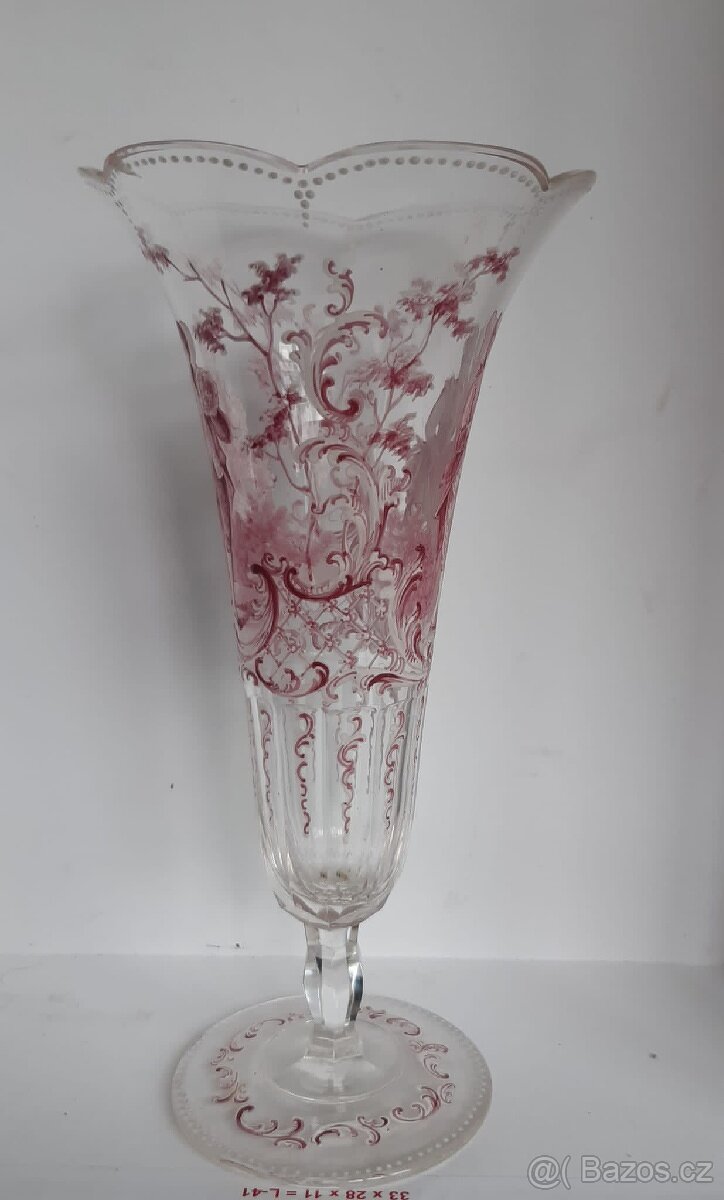 Prodám krásnou , starou, ručně malovanou skleničku s mírným oťukem - viz foto. Výška 21 cm.