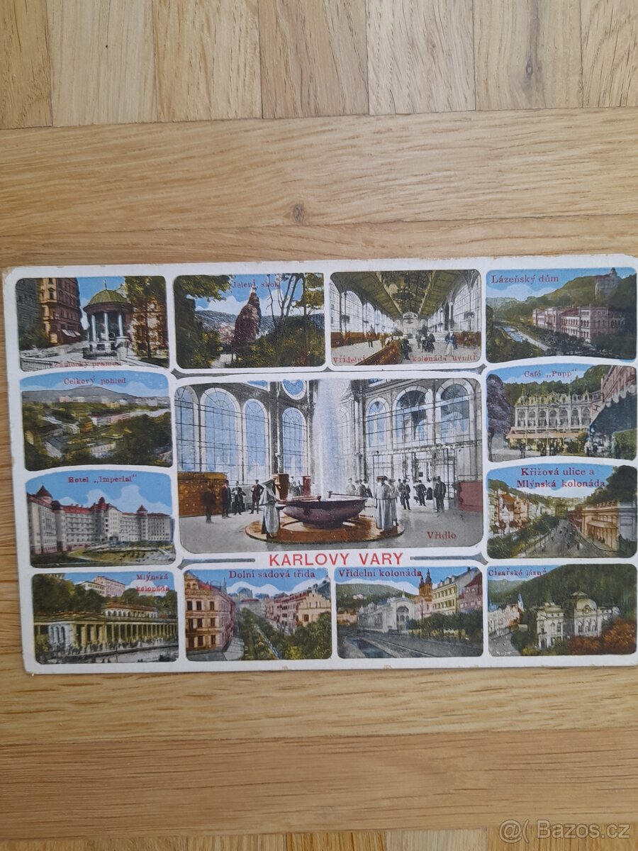 Nabízím krásný, nepoužitý kolorovaný pohled z Karlových Varů, okolo 1910. Cena 300,- Kč plus poštovné
