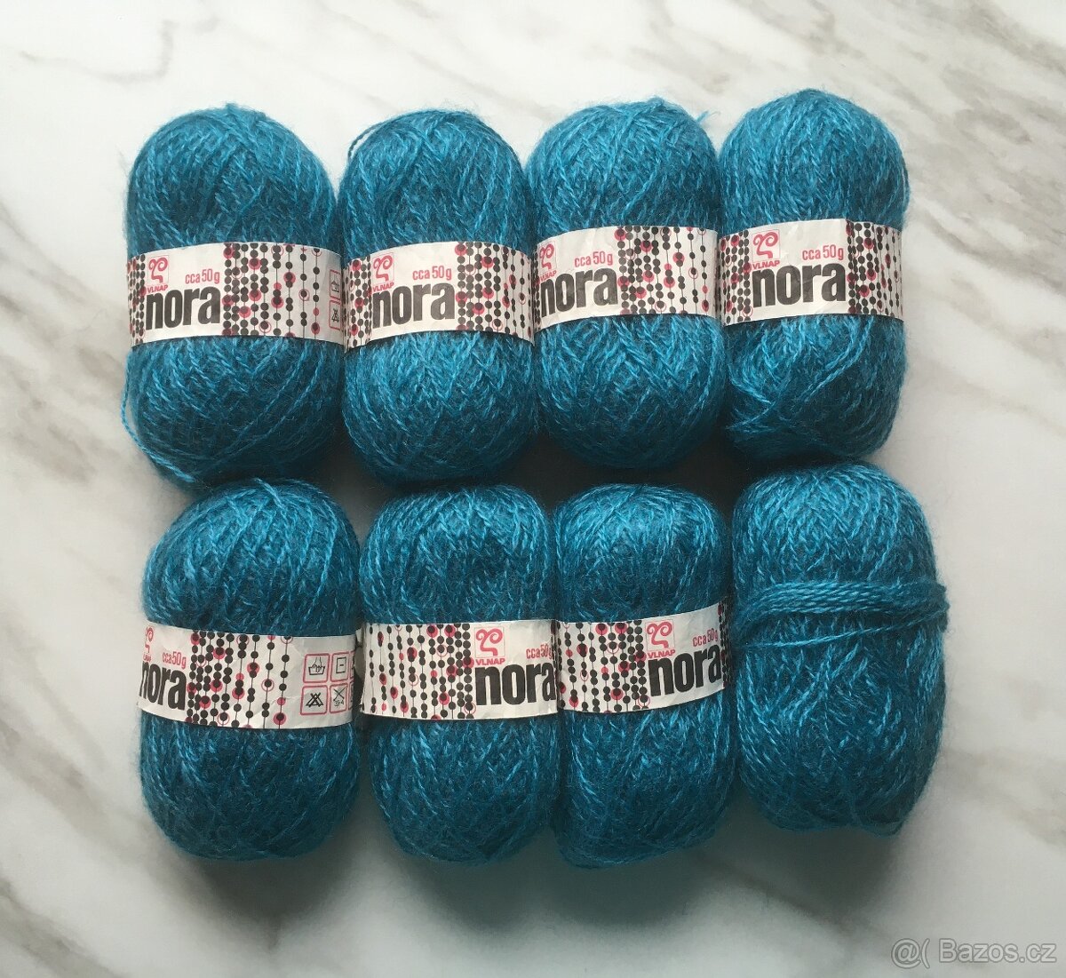 Prodám 40 dkg (8 klubek) modré pletací příze. Složení: 28 % mohér, 12 % vlna, 50 % PAN, 10 % PAD.