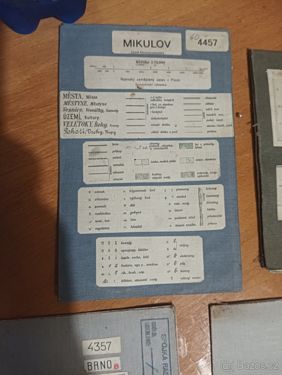 Nabízím k prodeji staré vojenské mapi české republiky 23xna plátně a 12x čistý papír stáří od roku 1919 v slušném přijatelném stavu některé vyznačené vzdálenosti viz.foto více info po tel.607509378 s možností osobního převzetí v Olomouci