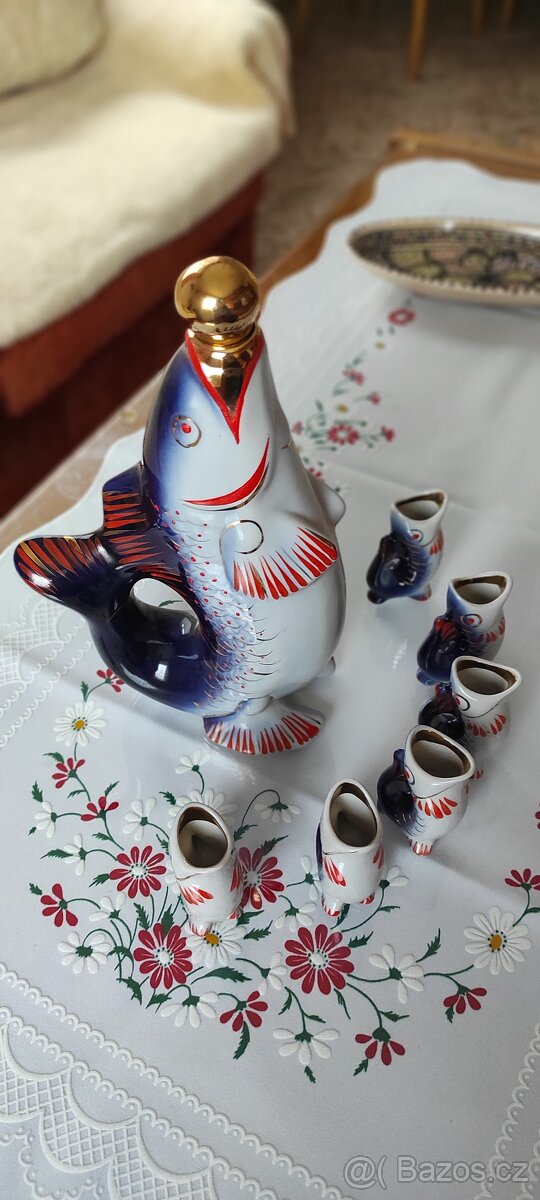 Prodám karafu rybu a 6 panáků
