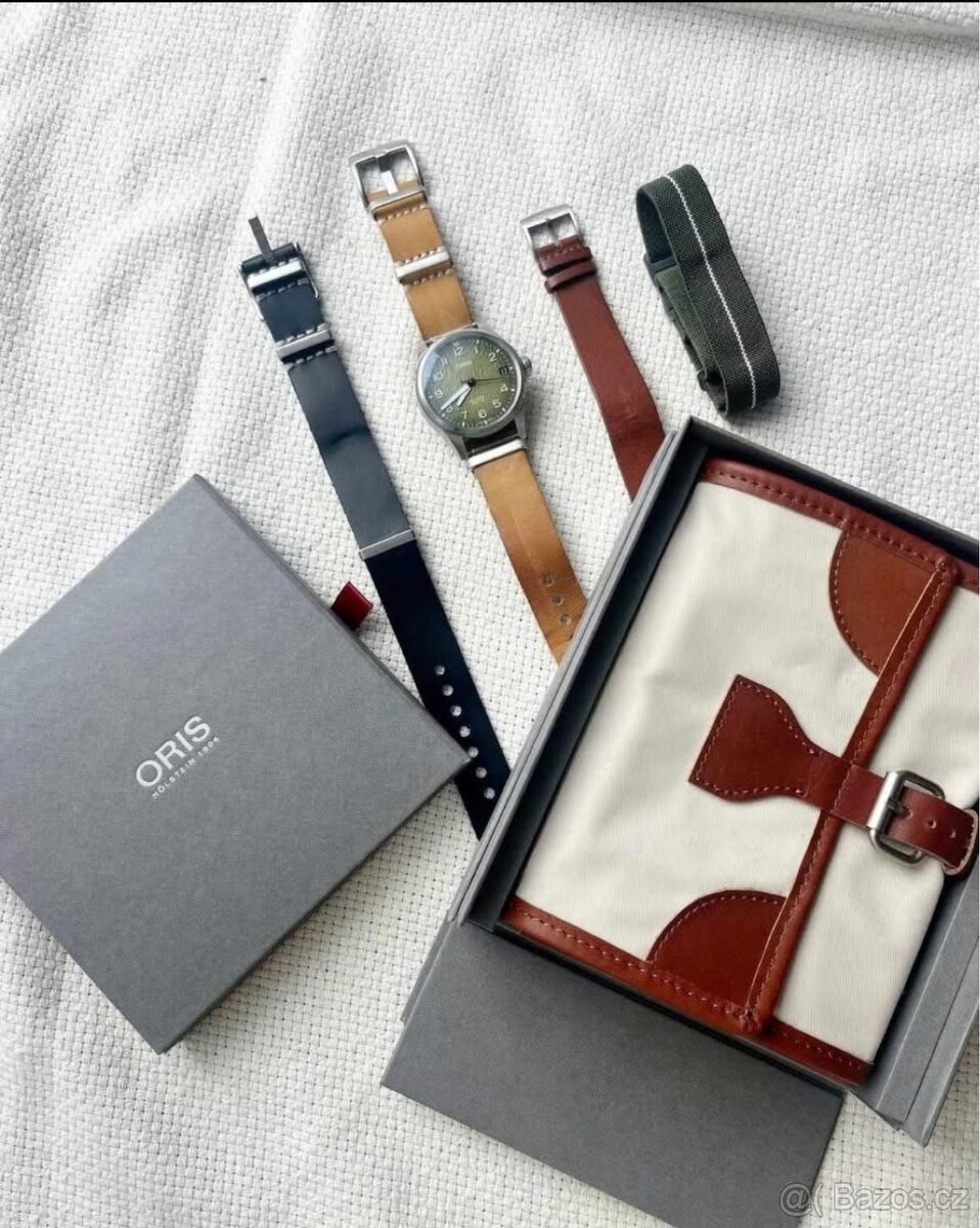 V ceně přidám i další řemínky 20mm viz foto, které dále nevyužiji (černý kožený NATO je úplně nový, koupený před týdnem). Hnědý kožený originál pásek ORIS má ze spodu drobné poškození..nosil jsem ho častěji k jiným hodinkám.