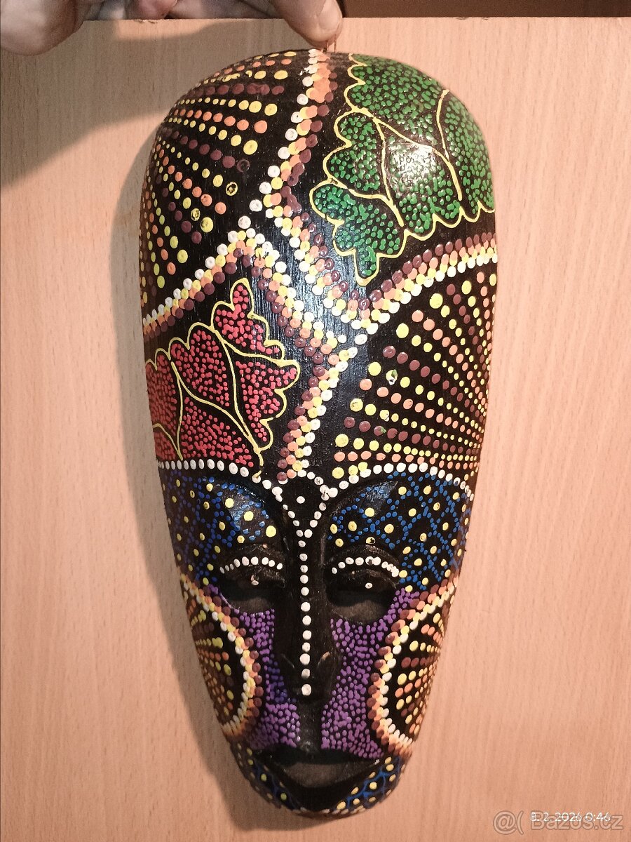 Ručně malovaná nástěnná maska v africkém stylu - 30 x 11 cm