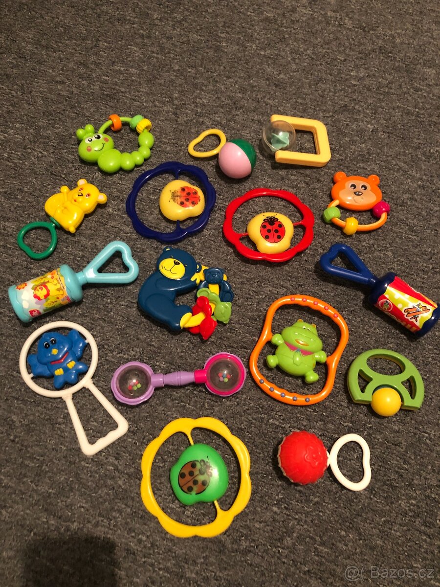 Stará hrkátka, chrastítka do ruky, á 50,-, 60,-, zvonkohry 90,-