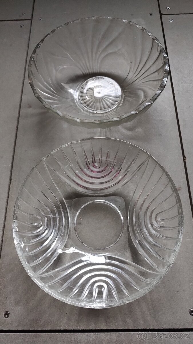 Skleněná mísa nástolec - [26.1. 2026]Prodám velkou skleněnou oválnou mísu. Masivní lisované sklo. Rozměry viz foto. Oťuk 5 mm a dva 1 mm, označeno viz fota. Na trase Varnsdorf-Liberec-Jablonec nad Nisou-Mladá Boleslav-Praha Žižkov dovezu. Jinak Balíkovna 75 Kč nebo Zásilkovna 89 Kč.