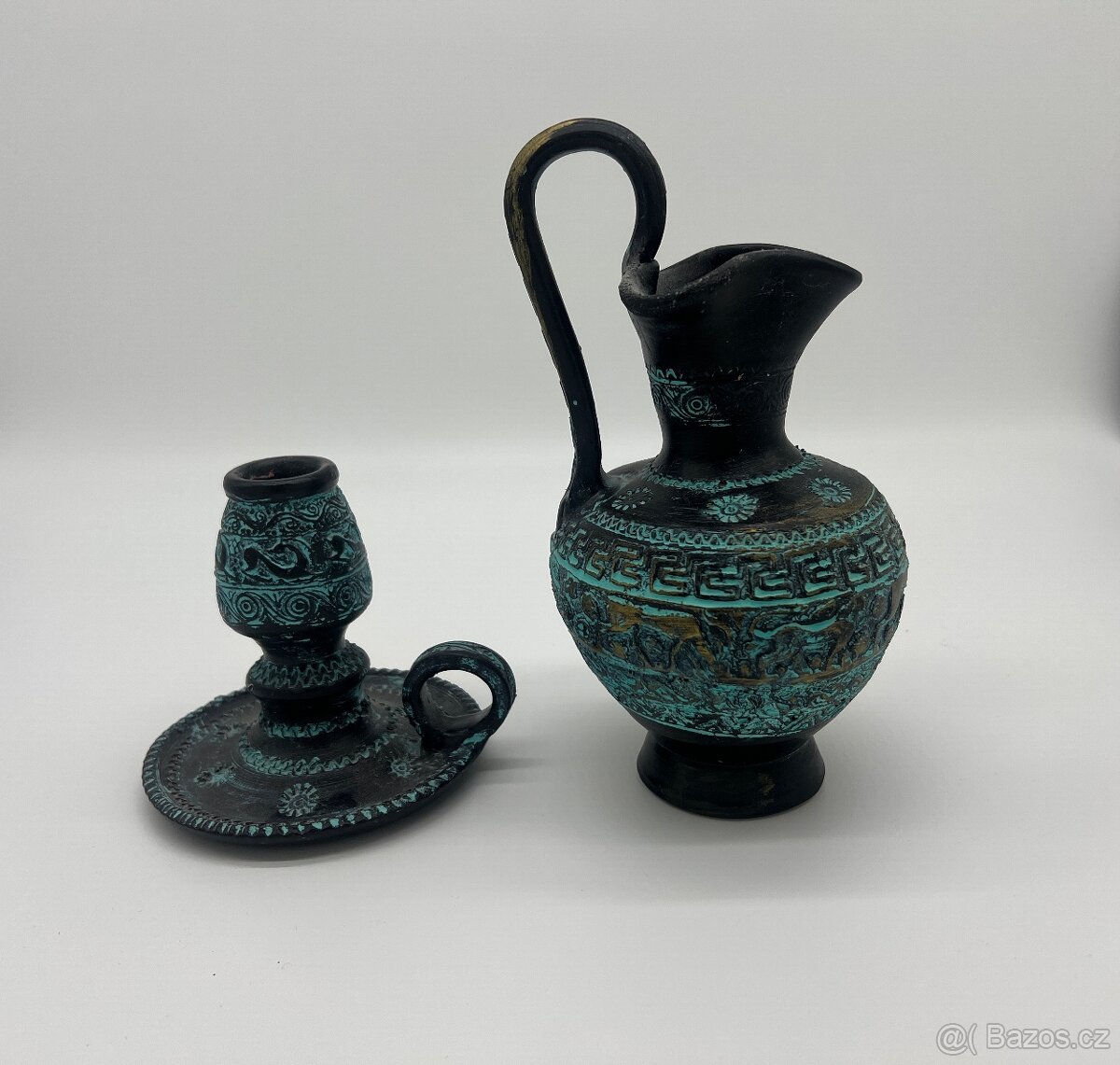 Prodám dekorativní keramickou sadu ve stylu starověkého Řecka – džbánek s uchem a svícen.