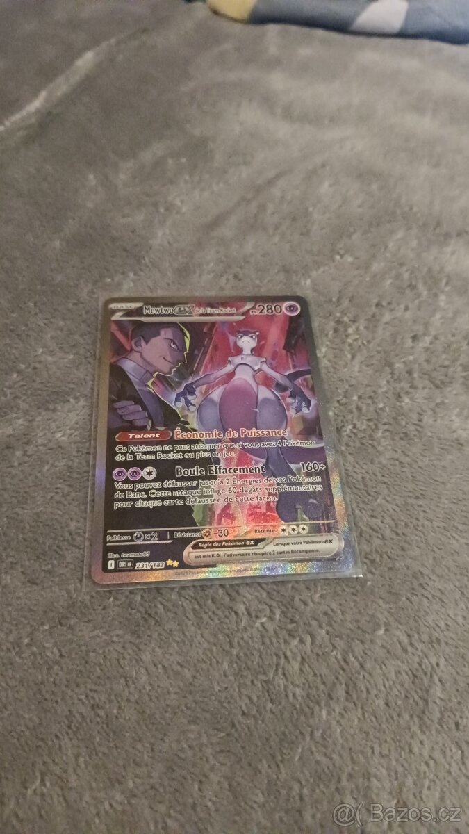 dobrý den, nabizim mewtwo ex alt art. Byl zakoupen na Tahity, ihned jakmile byl otevřete vložen do sleevu, kartu mohu prodat nebo vyměnit za různé hity, boxy. Zajímají mne různé hity charizardu. V případě zájmu o informace, lepší foto neváhejte kontaktovat