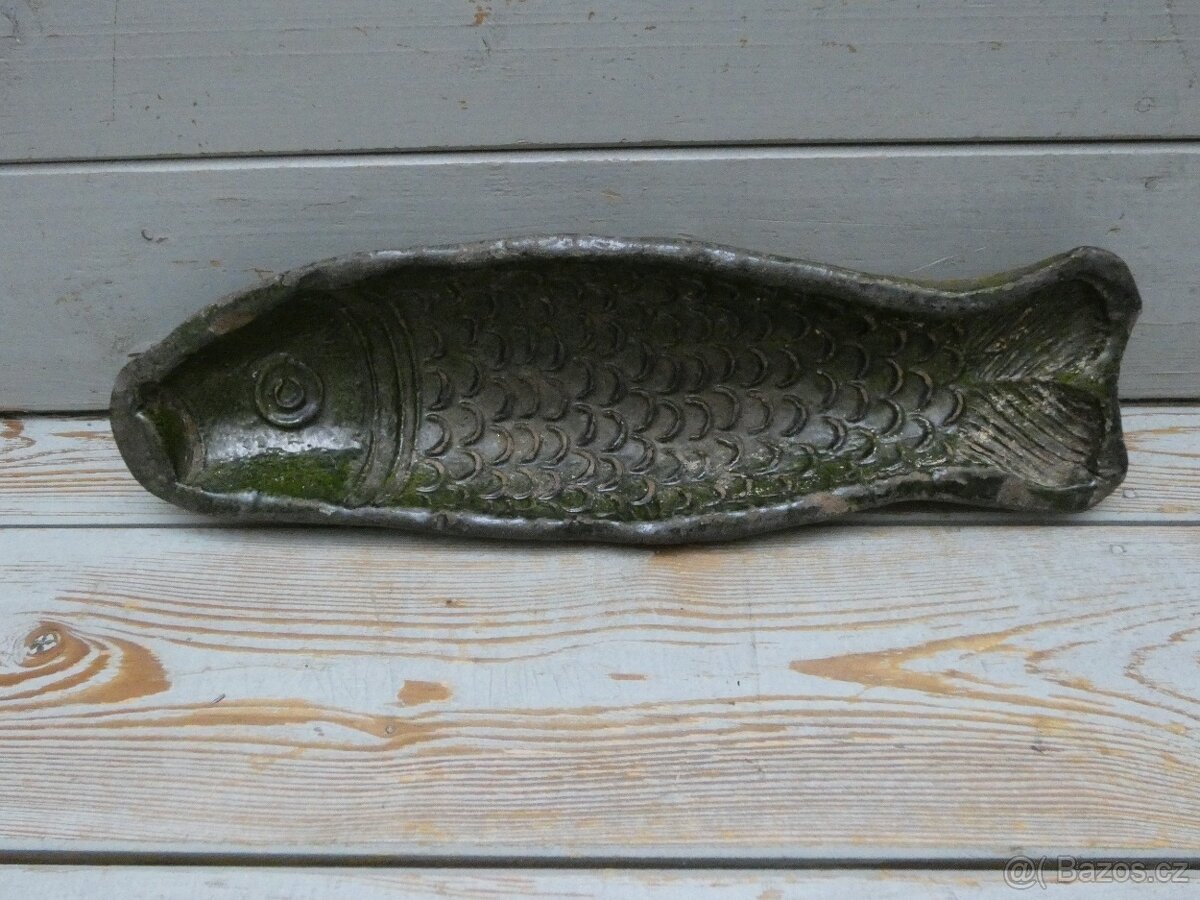 k prodeji velmi stará barokní keramická forma-bábovka RYBA délka 44 cm,stav dle fota