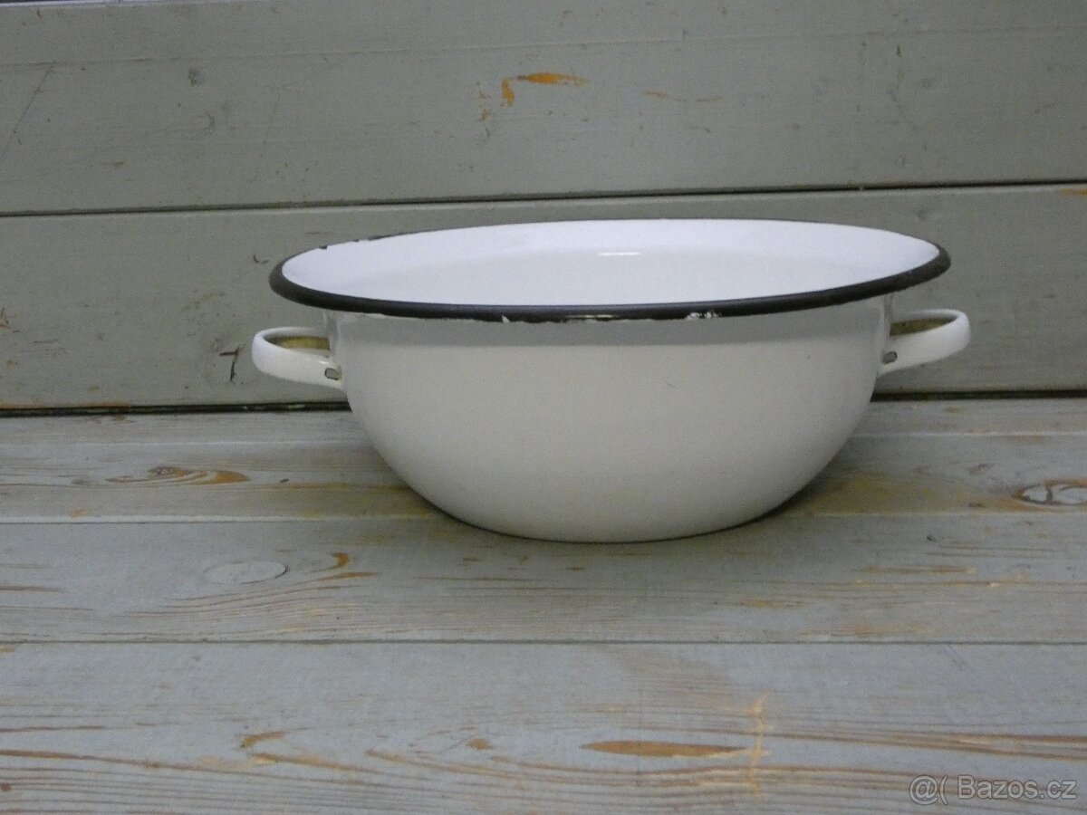 Bílá smaltovaná mísa s ušima