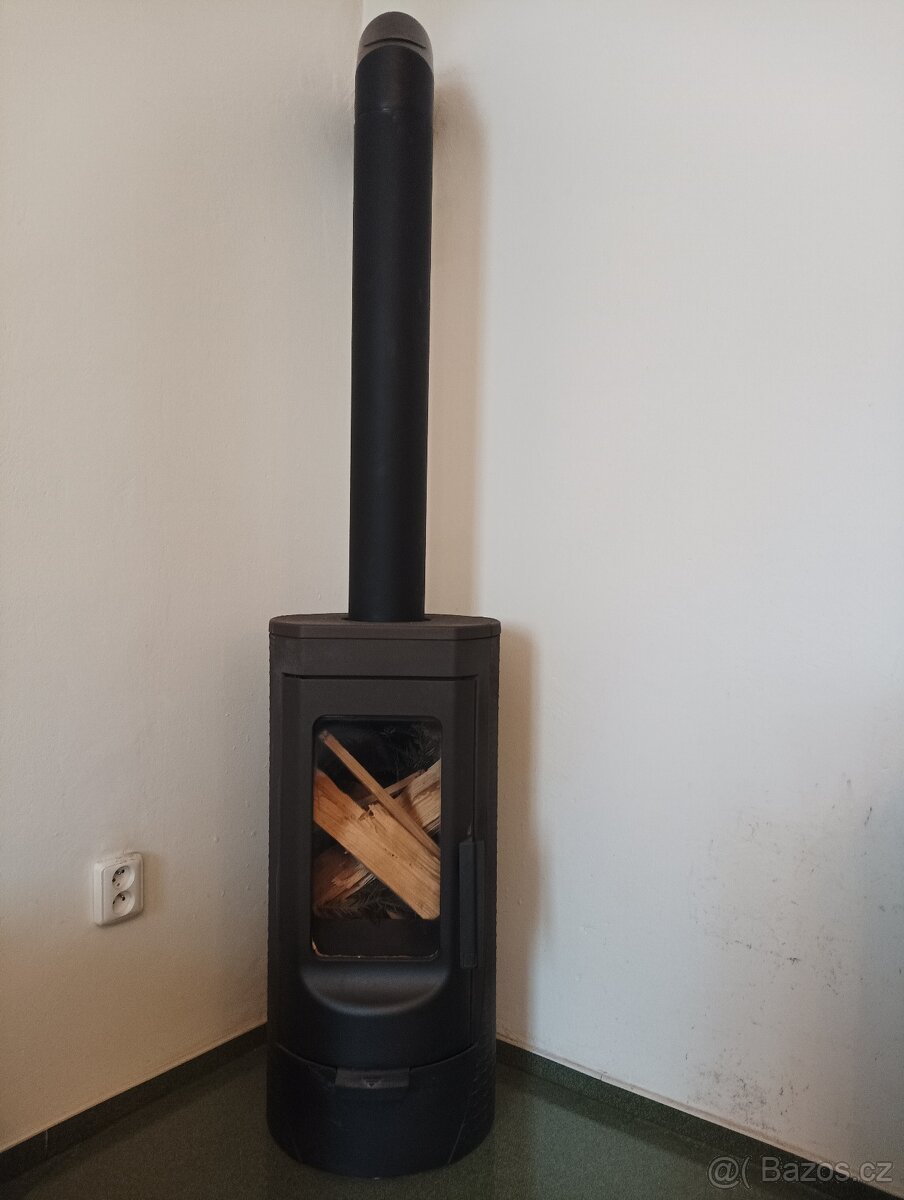 Prodám 3 roky užívaná kamna. Rozměry - viz foto. Váha 85kg. Výkon 6kW. Kouřovod průměr 120 mm. V ceně izolační rohové sklo pod kamna (dvě stěny 90° + půlkruh). Vlastní odvoz Znojmo.