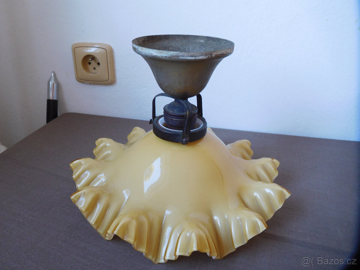 Nabízím starou stropničku, rozměr stínidla - průměr 26 cm, výška 9,5 cm, nálezový stav viz foto - nečištěno