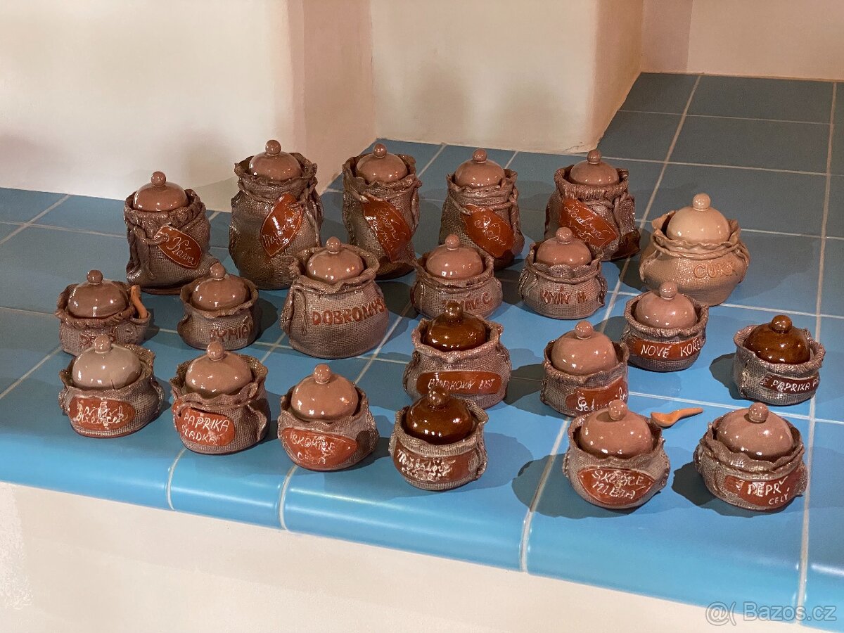 Prodáme keramickou sadu kořenek dříve používanou ve výborném stavu. Celkem 22 kusů.